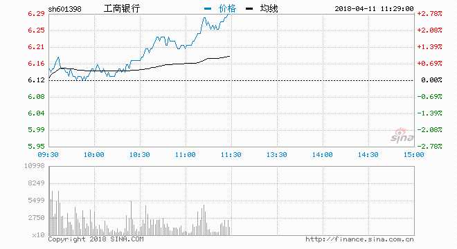 午評:銀行板塊強勢崛起 工商銀行漲近3%