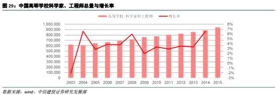 具體表現(xiàn)為:第一,中國高科(600730) 技人才數(shù)量大增長快。理工科畢業(yè)生逐年增加,我國高等學校科學家、工程師人數(shù)液逐年增加,體現(xiàn)了我國技術創(chuàng)新科技進步的巨大潛力,同時也為經濟發(fā)展提供了人力資本支持。