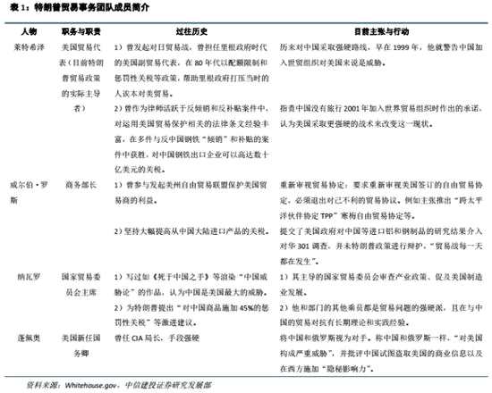 貿易核心決策層中,對華強硬派占主導。白宮最后一位“全球派”——國務卿蒂勒森離職,預示著未來美國采取進一步“貿易戰(zhàn)”措施的可能性加深。在政策執(zhí)行層面,特朗普為貿易政策制定和執(zhí)行打造了具有貿易保護色彩的團隊,其團隊核心成員貿易代表萊特希澤主導多次針對他國的貿易調查,而商務部部長羅斯,國家貿易委員會主席納瓦羅都是貿易保護思想的堅定支持者。