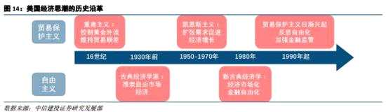危機后西方國家貿易保護主義抬頭。在經歷了亞當斯密的古典自由主義思想和1929年金融危機后,凱恩斯的政府干預經濟思想主導了全球經濟格局;隨著戰(zhàn)后的石油危機和全球滯脹,新古典經濟學的市場化、全球化再次成為主流;2008年隨著金融海嘯席卷全球,全球貿易保護主義又有抬頭趨勢。