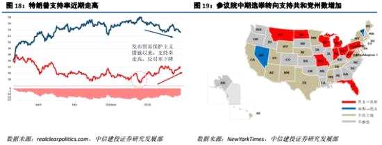 貿易保護是特朗普備戰(zhàn)中期選舉的關鍵工具。2018年11月6日美國將迎來國會選舉,參議院的1/3(33席)和眾議院所有的議員(435席)均將改選。目前特朗普所在的共和黨在國會兩會都占據(jù)多數(shù)黨的優(yōu)勢地位,中期選舉中是否能保持優(yōu)勢,對于其未來兩年是否能順利推行各個政策將至關重要。2016年特朗普通過提出貿易保護主義政策贏得了“鐵銹區(qū)”的選民支持。因此,時間點上看未來幾個月,為爭取“鐵銹區(qū)”選民支持,美國貿易保護壓力大概率仍將處于高位。