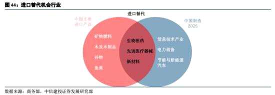 結合我國各行業(yè)貿易特點和《中國制造2025》等相關政策文件,以下產業(yè)正在加速進口替代或可能成為未來進口替代的重點領域:
