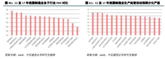 從產業(yè)結構的升級路徑來看,會由高新技術產業(yè)最先開始啟動,傳導到傳統(tǒng)行業(yè)分化出的子行業(yè)當中。從12至17年的我國制造業(yè)各子行業(yè)平均PMI和平均生產經營預期指數(shù)來看,產業(yè)結構的分化已經開始,醫(yī)藥制造、計算機及其他電子設備、電器機械制造、汽車制造等高技術產業(yè)PMI居于前列,而服裝紡織、石油加工等傳統(tǒng)的工業(yè)大類PMI則排名靠后,表明產業(yè)升級正在持續(xù)進行之中。