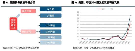 ?。?)阻礙中國的產業(yè)政策。在最新一期的《關于中國履行WTO承諾情況的報告》中,美國認為《中國制造2025》是中國政府主導經濟行為的證明之一。中國的目的在于通過公平和不公平的行為,在高新技術領域進行進口替代,隨后占領全球市場。由此,我國在高新技術領域的產業(yè)政策將成為美國發(fā)起貿易救濟措施的重要抓手,而在《中國制造2025》中提列的十大重點領域:新一代信息技術產業(yè)、高檔數(shù)控機床和機器人(300024) 、航空航天裝備、海洋工程裝備及高技術船舶、先進軌道交通裝備、節(jié)能與新能源汽車、電力裝備、農機裝備、新材料、生物醫(yī)藥及高性能醫(yī)療器械或成為中美貿易摩擦事故的高發(fā)地。
