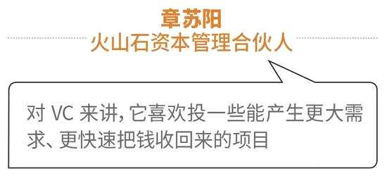 對VC來講,它喜歡投一些能產(chǎn)生更大需求、更快速把錢收回來的項目,你說是擊鼓傳花賺錢也好,通過實際利潤達到多少倍也行。