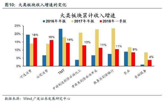 18年一季報中小板收入增速下滑至24%、盈利增速下滑至18%——中小板2017年三季報收入增速為27.6%,而17年年報收入增速下行至27.0%,18年一季報加速回落至24.3%;中小板2017年三季報盈利增速為23.7%,而17年年報盈利增速下行至19.7%,18年一季報繼續(xù)回落至18.4%。