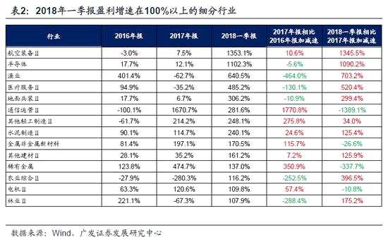一季報絕對景氣最高的行業(yè)——在102個申萬一級行業(yè)中,我們篩選了一季報盈利增速在100%以上的高增長行業(yè)如下表,其中航空裝備、半導(dǎo)體、醫(yī)療服務(wù)等新興行業(yè)一季報絕對增速最高,建材等行業(yè)盈利連續(xù)加速。