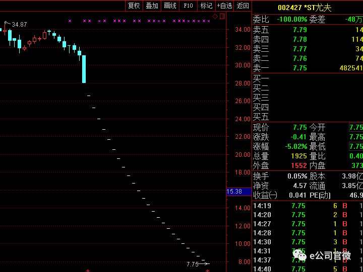 具體個(gè)股中,今天收盤時(shí) *ST尤夫(002427)、*ST華信(002018)等19只ST股批量跌?;蛴|及跌停板,一些新成員如*ST東凌(000893)、*ST富控等直接一字跌停。