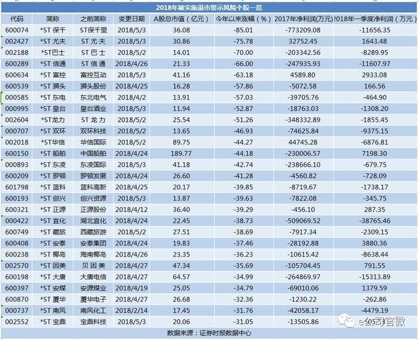 據(jù)數(shù)據(jù)中心統(tǒng)計(jì),今年約有45只股票新納入*ST陣營(yíng),絕大部分股票今年下跌, *ST保千、*ST尤夫、*ST巴士(002188)年內(nèi)跌幅超過70%,另有24股跌幅超過30%。