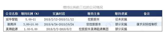 其次,以增持股份所占比例上限統(tǒng)計,延華智能(002178) 、新南洋(600661) 和美錦能源(000723) 分列前三位。其中,新南洋的增持方中金投資(集團)有限公司及其一致行動人作為非控股股東,本次增持旨在謀求公司實際控制權(quán)。
