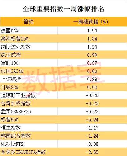 歐洲三大股指繼續(xù)反彈。德國(guó)DAX指數(shù)本周累計(jì)上漲1.9%,富時(shí)100指數(shù)、法國(guó)CAC40指數(shù)也小幅上漲。值得一提的是,上述三大股指周線均實(shí)現(xiàn)六連陽(yáng)的強(qiáng)勢(shì)表現(xiàn)。美國(guó)三大股指本周走勢(shì)呈現(xiàn)先抑后揚(yáng),全周納斯達(dá)克指數(shù)上漲1.26%,主要是隔夜大漲1.71%的功勞。