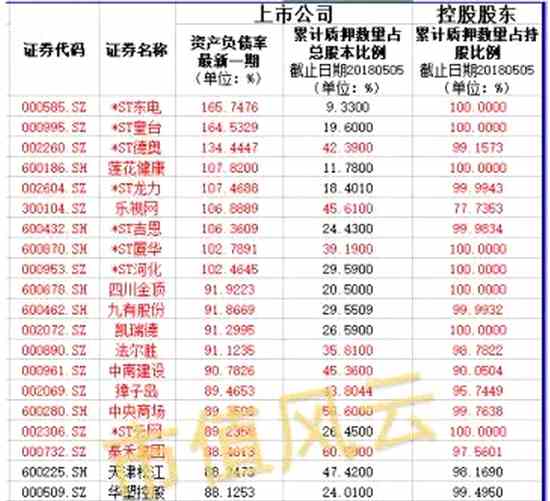 A股上市公司股權質(zhì)押創(chuàng)歷史新高:債務危機預警名單