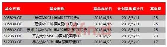 除了目前在發(fā)的5只MSCI基金,等待發(fā)行的還有1只,南方MSCI中國A股ETF聯(lián)接基金,計劃于5月9日開始募集,募集期27天。