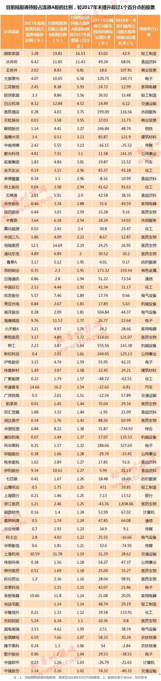 如以陸股通目前的持股數據對比2017年底,則有961只持股比例得到提升,占陸股通標的總數的65%。其中有75只股票陸股通持股比例提升超過1個百分點。