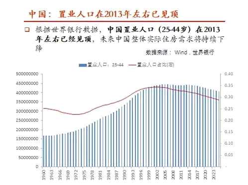 根據(jù)世界銀行數(shù)據(jù),中國置業(yè)人口(25-44歲)在 2013年左右已經(jīng)見頂,未來中國整體實(shí)際住房需求將持續(xù)下降。大家可能很好奇,為什么2015-2017年房地產(chǎn)市場還非常火爆?我相信現(xiàn)在的房地產(chǎn)有很多預(yù)防性的,把未來的需求提前到今天釋放。為什么有這樣的釋放?因?yàn)檫^去二十年房價(jià)不斷走高強(qiáng)化了大家的預(yù)期,讓我們的需求和供給發(fā)生異化。現(xiàn)在看房地產(chǎn)的銷量、庫銷比創(chuàng)了歷史新低,未來會(huì)因?yàn)榻裉爝^度的需求,導(dǎo)致十年后產(chǎn)生嚴(yán)重的供過于求的結(jié)果,這是我們對這方面的思考。