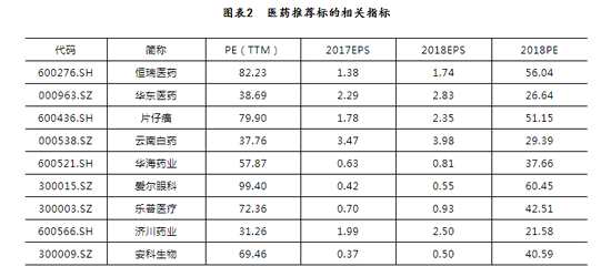 圖表2 醫(yī)藥推薦標(biāo)的相關(guān)指標(biāo)