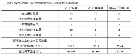 圖表:同2017年相比,2018年新增違約企業(yè)、違約民營企業(yè)情況突出