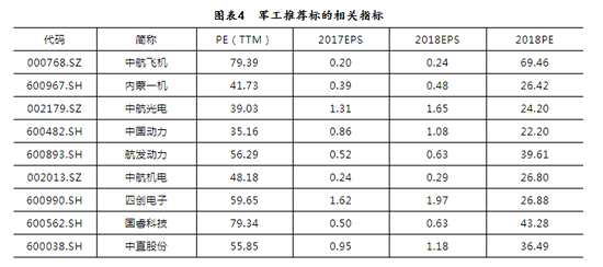 圖表4 軍工推薦標(biāo)的相關(guān)指標(biāo)