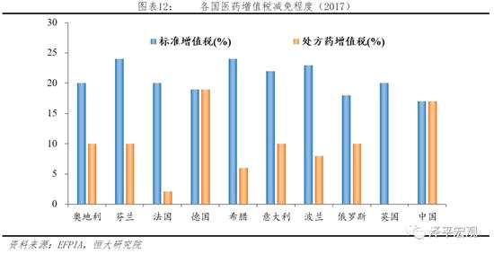 較高藥品稅賦、藥品流通秩序混亂推高中國進(jìn)口藥價。當(dāng)前中國除了抗艾滋病藥物和激素類避孕藥物免除關(guān)稅之外,大部分進(jìn)口藥品關(guān)稅均在5%-8%左右,收取增值稅17%,較高藥品稅賦使得進(jìn)口藥品價格上升30%左右。根據(jù)歐洲制藥工業(yè)協(xié)會聯(lián)合會(EFPIA)2017公布的數(shù)據(jù)來看,大多數(shù)國家均對藥品增值稅進(jìn)行減免,其中英國、瑞士等國家將藥品增值稅降低為0,而中國對此并無減免。此外,當(dāng)前中國對公立醫(yī)院補貼較少,低于國際平均水平,促使醫(yī)院大量提高醫(yī)藥、器械價格,“以藥養(yǎng)醫(yī)”、“以器養(yǎng)醫(yī)”。進(jìn)口藥品稅率較高疊加經(jīng)銷商和醫(yī)院的多重溢價均進(jìn)一步推升藥價,應(yīng)對關(guān)稅及增值稅適當(dāng)減免、加強藥品流通秩序維護(hù),降低藥價,解決老百姓用藥貴的問題。