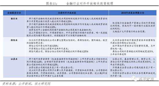 2018年4月10日習(xí) 近平總 書記在博鰲講話中強調(diào)將進(jìn)一步擴(kuò)大對外開放,在服務(wù)業(yè)特別是金融業(yè)方面,確保放寬銀行、證券、保險行業(yè)外資對外開放的重大措施落地。伴隨新一輪金融業(yè)對外開放時間表的公布,中國將以更大的決心、更堅定的勇氣推進(jìn)金融業(yè)對外開放。