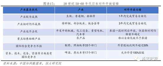 1955年日本加入了關(guān)貿(mào)總協(xié)定(GATT)后,面臨國際上的壓力以及出口導(dǎo)向型企業(yè)的國際競爭力日漸提高,日本在1960年6月首次公布了貿(mào)易自由化的大綱安排,目標(biāo)是在3年內(nèi)將自由化率(零關(guān)稅品種占比)從40%提升到80%,根據(jù)產(chǎn)業(yè)發(fā)展成熟度的不同逐步在3年內(nèi)開放。