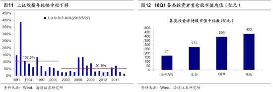 我國(guó)機(jī)構(gòu)資金入市和發(fā)行制度改革的進(jìn)程在進(jìn)一步加快。為了建立成熟的養(yǎng)老體系以及進(jìn)一步發(fā)展和完善資本市場(chǎng)功能,我國(guó)一方面正在積極發(fā)展并推動(dòng)我國(guó)養(yǎng)老資金入市,提高資本市場(chǎng)對(duì)外資的開(kāi)放程度;另一方面也在積極的吸納更多優(yōu)質(zhì)的高新技術(shù)企業(yè)上市。目前我國(guó)養(yǎng)老體系中基本養(yǎng)老保險(xiǎn)(第一支柱)替代率持續(xù)下行,企業(yè)年金(第二支柱)發(fā)展起步晚且參與度低,而個(gè)人養(yǎng)老方面(第三支柱)仍處于起步階段。對(duì)比中美養(yǎng)老資產(chǎn)占比,2017年美國(guó)養(yǎng)老金總資產(chǎn)達(dá)到27.9萬(wàn)億美元,養(yǎng)老金總資產(chǎn)/GDP達(dá)到144%,而我國(guó)養(yǎng)老金總資產(chǎn)僅0.9萬(wàn)億美元,養(yǎng)老金總資產(chǎn)/GDP僅7.1%。為建立成熟的養(yǎng)老體系,2018年3月證監(jiān)會(huì)發(fā)布《養(yǎng)老目標(biāo)證券投資基金指引(試行)》,支持公募基金行業(yè)通過(guò)養(yǎng)老目標(biāo)基金服務(wù)于個(gè)人投資者進(jìn)行養(yǎng)老投資。截至18年5月17日,據(jù)證監(jiān)會(huì)公布已有來(lái)自24家基金公司的50只養(yǎng)老目標(biāo)基金排隊(duì)上報(bào)。財(cái)政部等五部門于4月12日發(fā)布《關(guān)于開(kāi)展個(gè)人稅收遞延型商業(yè)養(yǎng)老保險(xiǎn)試點(diǎn)的通知》的規(guī)定,對(duì)試點(diǎn)地區(qū)個(gè)人通過(guò)個(gè)人商業(yè)養(yǎng)老資金賬戶購(gòu)買符合規(guī)定的商業(yè)養(yǎng)老保險(xiǎn)產(chǎn)品的支出,允許在一定標(biāo)準(zhǔn)內(nèi)稅前扣除。一系列政策將推動(dòng)我國(guó)商業(yè)養(yǎng)老保險(xiǎn)(第三支柱)的保費(fèi)長(zhǎng)期有望顯著提升,從而助力機(jī)構(gòu)投資者發(fā)展。另一方面,我國(guó)資本市場(chǎng)中外資的占比同樣在提升,在2018年6月1日和9月3日,A股將分兩批納入MSCI新興市場(chǎng)指數(shù)和MSCI全球指數(shù),最終今年MSCI納入A股比例將達(dá)5%,A股占MSCI新興市場(chǎng)指數(shù)權(quán)重為0.73%,預(yù)計(jì)初步帶來(lái)大約1200億人民幣被動(dòng)配置資金流入。目前A股自由流通市值中外資持股占比僅3.5%,遠(yuǎn)低于日本、韓國(guó)的30%、16%。隨著國(guó)內(nèi)資本市場(chǎng)對(duì)外開(kāi)放的步伐加快,未來(lái)我國(guó)外資持股占比持續(xù)提升是大勢(shì)所趨。除了國(guó)內(nèi)外機(jī)構(gòu)投資者的力量在不斷壯大以外,另一方面我國(guó)上市企業(yè)的質(zhì)量和數(shù)量也在不斷改善。為改善資本市場(chǎng)環(huán)境,監(jiān)管層正在積極的開(kāi)辟綠色通道吸引優(yōu)質(zhì)的獨(dú)角獸留在A股,并且擬通過(guò)CDR的形式吸引海外中概股回歸。3月份以來(lái),監(jiān)管機(jī)構(gòu)為獨(dú)角獸開(kāi)辟IPO綠色通道,陸續(xù)有富士康、寧德時(shí)代(300750,股吧)、藥明康德(603259,股吧)等企業(yè)火速過(guò)會(huì)。3月30日國(guó)務(wù)院辦公廳轉(zhuǎn)發(fā)證監(jiān)會(huì)《關(guān)于開(kāi)展創(chuàng)新企業(yè)境內(nèi)發(fā)行股票或存托憑證試點(diǎn)的若干意見(jiàn)》,允許海外新經(jīng)濟(jì)企業(yè)通過(guò)CDR的形式回歸A股。
