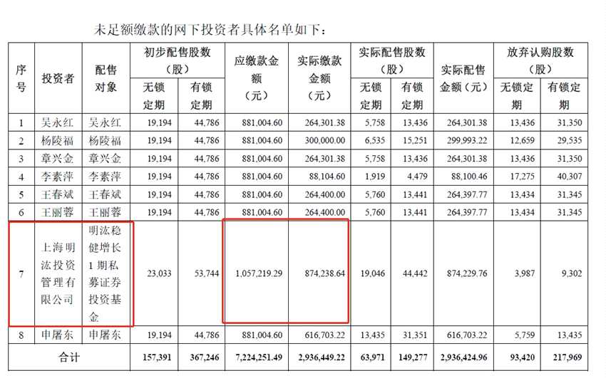 還有一家私募未足額繳款
