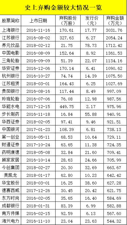 A股史上最大棄購金額