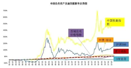 段子歸段子,讓我用一張正經(jīng)的圖來證明我的觀點:從10年以上的周期來看,A股其實一直在上漲,而且漲幅大大超過房產(chǎn)、債券和通脹。