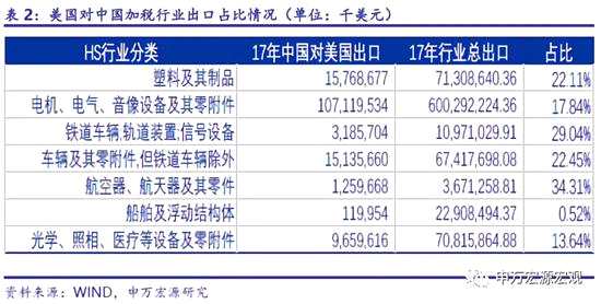 2. 量化1:加稅25%對行業(yè)出口的直接沖擊