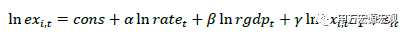 在具體建模上,我們主要借鑒了Goldstein和Kahn(1985)的思路。根據(jù)不完全替代理論,一國進(jìn)出口商品與國內(nèi)產(chǎn)品之間存在不完全替代關(guān)系,貿(mào)易國家出口具有比較優(yōu)勢的產(chǎn)品而進(jìn)口沒有比較優(yōu)勢的產(chǎn)品。在局部均衡框架下,出口取決于雙邊匯率和外國收入的大小,前者為“替代效應(yīng)”,后者為“收入效應(yīng)”。而“替代效應(yīng)”就是我們量化出口價格彈性的突破口。計量模型設(shè)定如下: