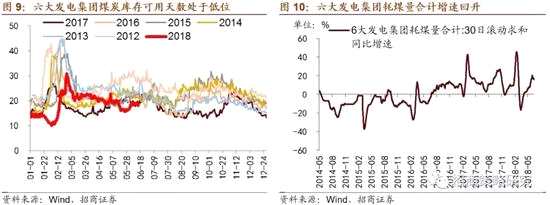 煤炭庫存處于低位。6月15日,六大發(fā)電集團煤炭庫存可用天數(shù)回落至18.6天,與歷史同期相比處于較低的水平。耗煤量合計30日滾動求和同比增速回升至16.26%。
