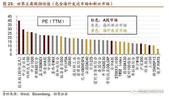 與全球其他股市核心股指相比,全部A股的估值處于中等水平,上證50和滬深300的估值較低。