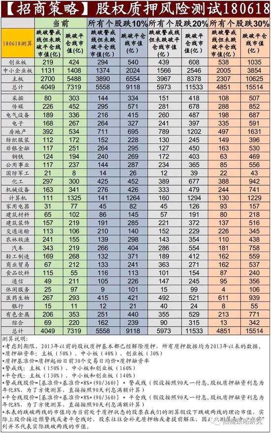 當前最大的壓力還來自于股權(quán)質(zhì)押,目前,上市公司股權(quán)質(zhì)押對應(yīng)的市值規(guī)模高達4.68萬億。截止2018年6月15日,跌破預(yù)警線的市值達到4049億,跌破平倉線的市值達到7319億,在當前股價下如果所有個股再下跌10%,跌破平倉線的市值將會增加1799億。
