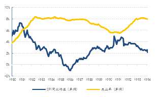 貨幣政策上,德國聯(lián)邦銀行始終保持謹慎狀態(tài)。八十年代中期,央行官方貼現(xiàn)率維持在4%-4.5%的范圍?!皬V場協(xié)議”后,德國聯(lián)邦銀行將官方貼現(xiàn)率逐步調低至2.5%,通脹保持在2%以下,失業(yè)率緩慢下行。隨著德國經濟逐步復蘇,貨幣寬松政策結束,1988年7月德國央行開始再次加息,時刻防范經濟過熱風險。
