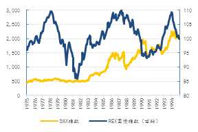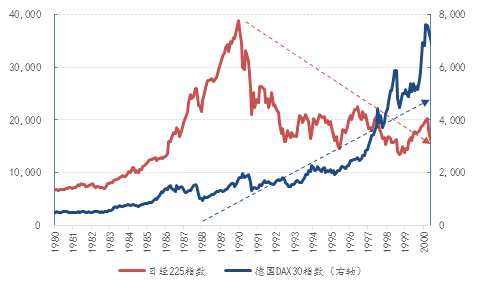 | 圖 1:九十年代,日本與德國股指表現(xiàn)分化