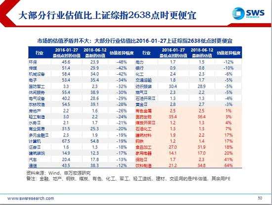 五、大部分行業(yè)估值比上證綜指2638點(diǎn)時(shí)更便宜。  五、大部分行業(yè)估值比上證綜指2638點(diǎn)時(shí)更便宜。