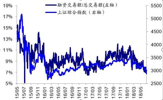 16年1月底以來融資交易占比高點為12.09%,低點為6.55%,上周融資交易占比6.96%,前一周為7.09%,處于偏低水平。