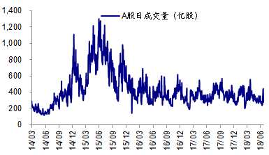 16年1月底以來日成交量高點為689億股,低點為190億股,上周為341億股,較前一周下降,處于偏低水平。