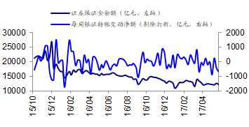 銀證轉(zhuǎn)賬數(shù)據(jù)自2017年6月16日后未更新,2017年以來累計減少1287億。
