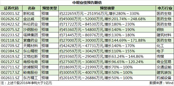 多只個(gè)股中報(bào)業(yè)績翻倍