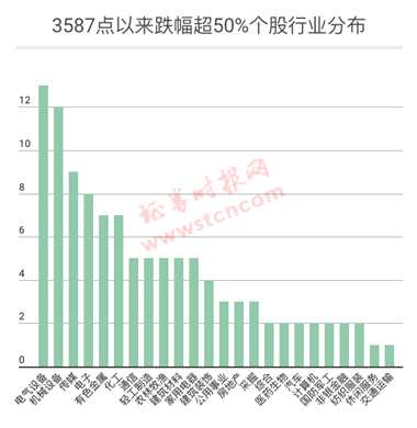 統計數據顯示,1月29日以來跌幅超50%的上市公司中,電氣設備、機械設備、傳媒以及電子行業(yè)個股居多,分別為13家、12家和9家。