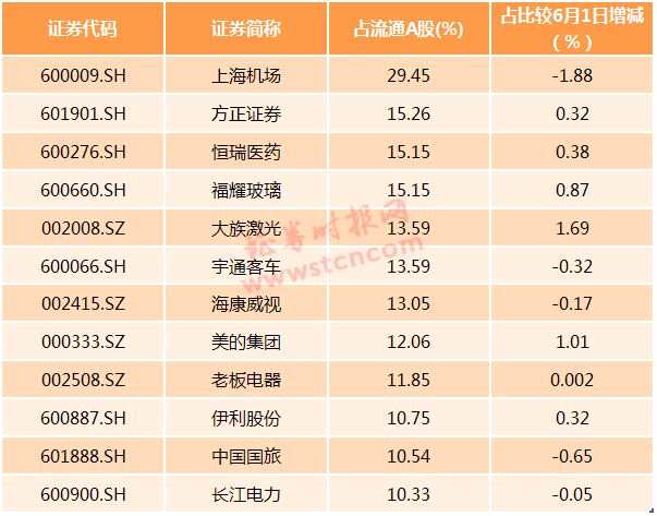 從持股占流通A股比例看,Wind統(tǒng)計數(shù)據(jù)顯示,截至6月26日,北上資金持有上海機(jī)場3.22億股,占流通A股比例達(dá)29.45%,位列首位。此外,北上資金對方正證券、恒瑞醫(yī)藥(600276,股吧)、福耀玻璃等3股持股比例均超過15%。