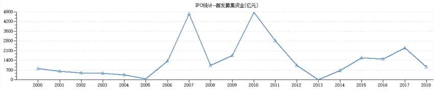 不過,在進入2018年后,A股上半年IPO數(shù)量 63家,僅為去年全年的14.38%、尚不足一成五,融資金額也只有922.87億元,僅占去年IPO融資規(guī)模的40.11%,IPO融資的縮水態(tài)勢明顯。