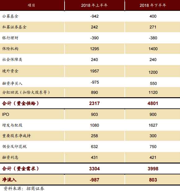 上半年外資提前布局,大規(guī)模流入,A股納入MSCI 落地后,外資流入逐漸趨于平穩(wěn),預計下半年外資流入規(guī)模會略有下降,保守估計下半年外資流入為1200億元。