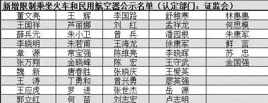 將被限制乘坐火車高級(jí)別席位(包括列車軟臥、G字頭動(dòng)車組列車全部座位、其他動(dòng)車組列車一等座以上座位)和民用航空器。