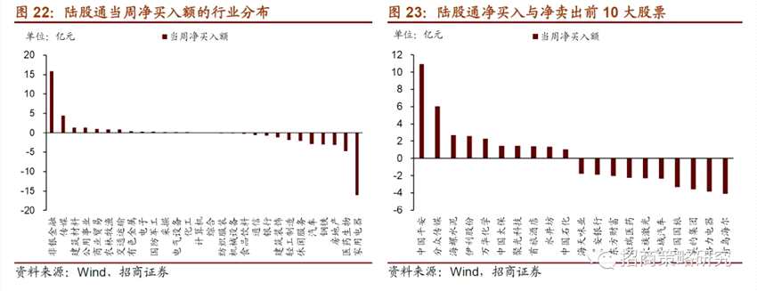 ? 從投資者偏好來看,融資客在大多數(shù)行業(yè)仍為凈賣出,陸股通集中流入非銀金融。融資凈買入規(guī)模較高的個股包括五糧液(000858,股吧)、萬科A(000002,股吧)等;凈賣出規(guī)模較高的為貴州茅臺(600519,股吧)、萬華化學(600309,股吧)等。陸股通買入規(guī)模較高的為中國平安(601318,股吧)、分眾傳媒(002027,股吧);凈賣出青島海爾(600690,股吧)、格力電器(000651,股吧)、美的集團(000333,股吧)等。