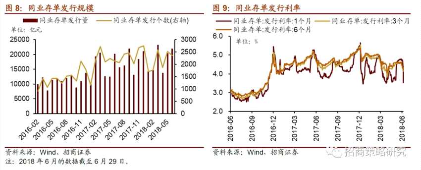 各期限同業(yè)存單發(fā)行利率均大幅下降。6月25日-6月29日,同業(yè)存單發(fā)行386只,發(fā)行總規(guī)模2732.1億元;截至6月29日,1個月、3個月、6個月同業(yè)存單發(fā)行利率分別較前期變動 -122.7bp、-32.1bp、-28.2bp 至 3.52%、4.13%、4.25%。