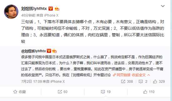 天風(fēng)證券首席經(jīng)濟(jì)學(xué)家劉煜輝在微博上表示,不要以低估值作為(股市)漲跌的理由,下落市不要具體去猜哪個(gè)點(diǎn),沒有意義,正確的是結(jié)構(gòu)。
