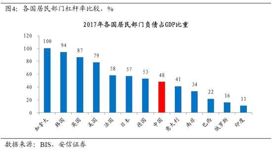 計算各部門的杠桿率并進行國際比較,容易看到,居民戶部門、中央政府的杠桿率都處在安全區(qū)間,地方政府負有償還責任的債務比率上升較快,但總體水平尚屬可控。杠桿率的快速上升主要集中在企業(yè)部門,并且其絕對水平在國際比較中高居前列。